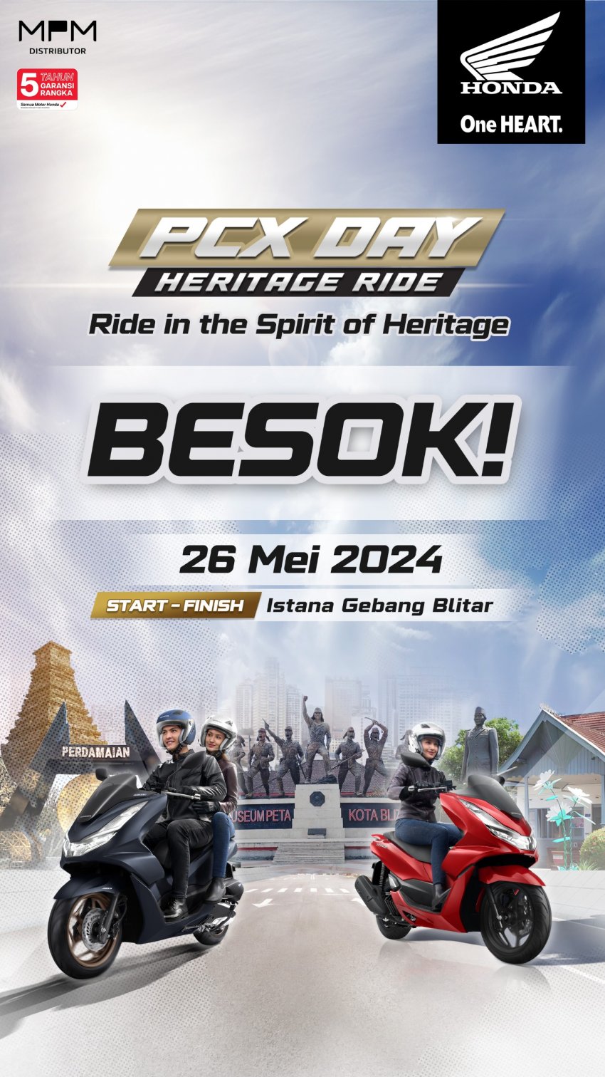 Dengan tema “PCX Day Heritage Ride”, PCX Day 2024 ini digelar di Istana Gebang Blitar. Beragam kegiatan akan memeriahkan PCX Day 2024 ini seperti City Riding yang diikuti oleh Ratusan pecinta Honda PCX dengan mengunjungi berbagai tempat heritage Kota Blitar.