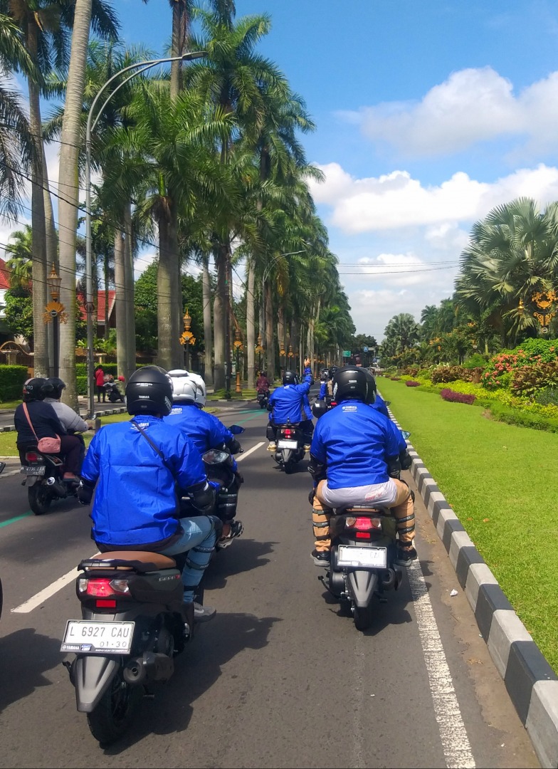 Setelah doa bersama dan mengenakan Apparel komplit, rombongan middle touring Gear Ultima 125 Hybrid S, diberangkatkan di cuaca yang begitu bersahabat.