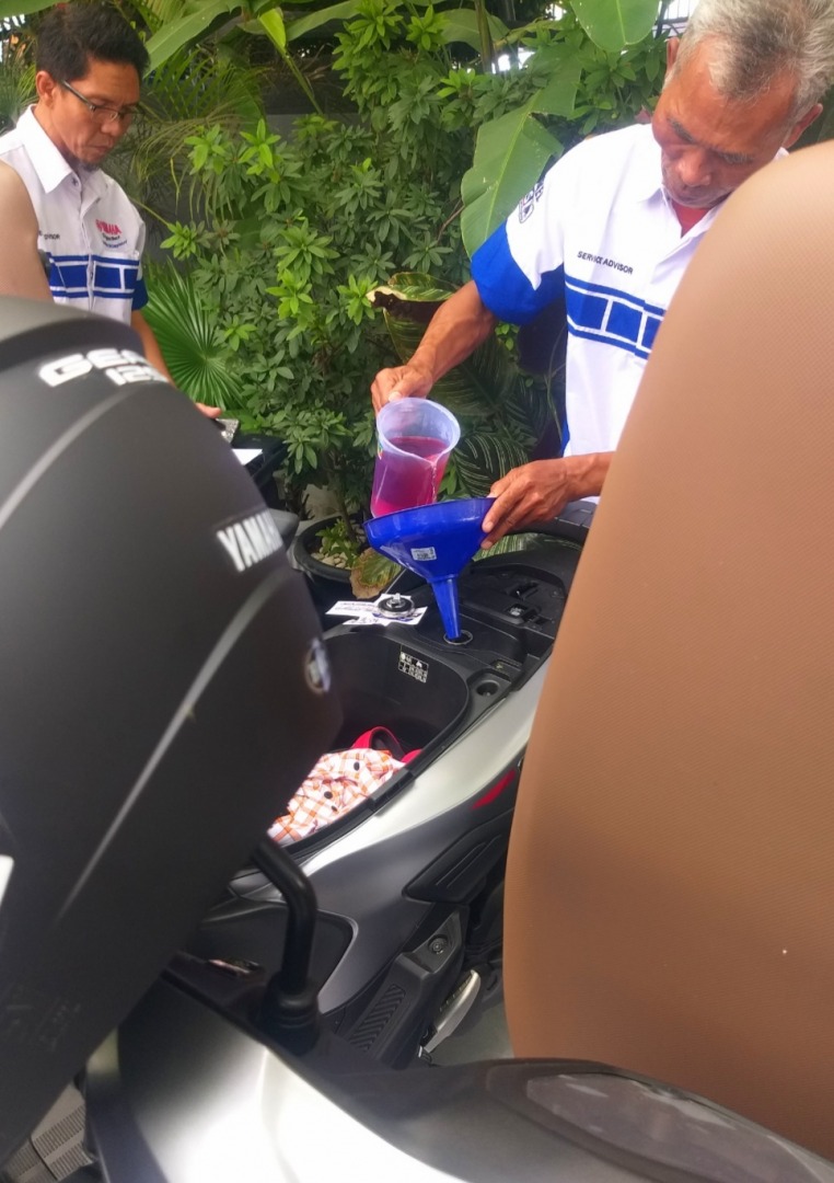 Di kesempatan ini, Divisi Teknik Yamaha Sentral Malang, turut mengecek kapasitas bahan bakar yang terpakai, dari masing-masing rider, dengan metodhe full to full.