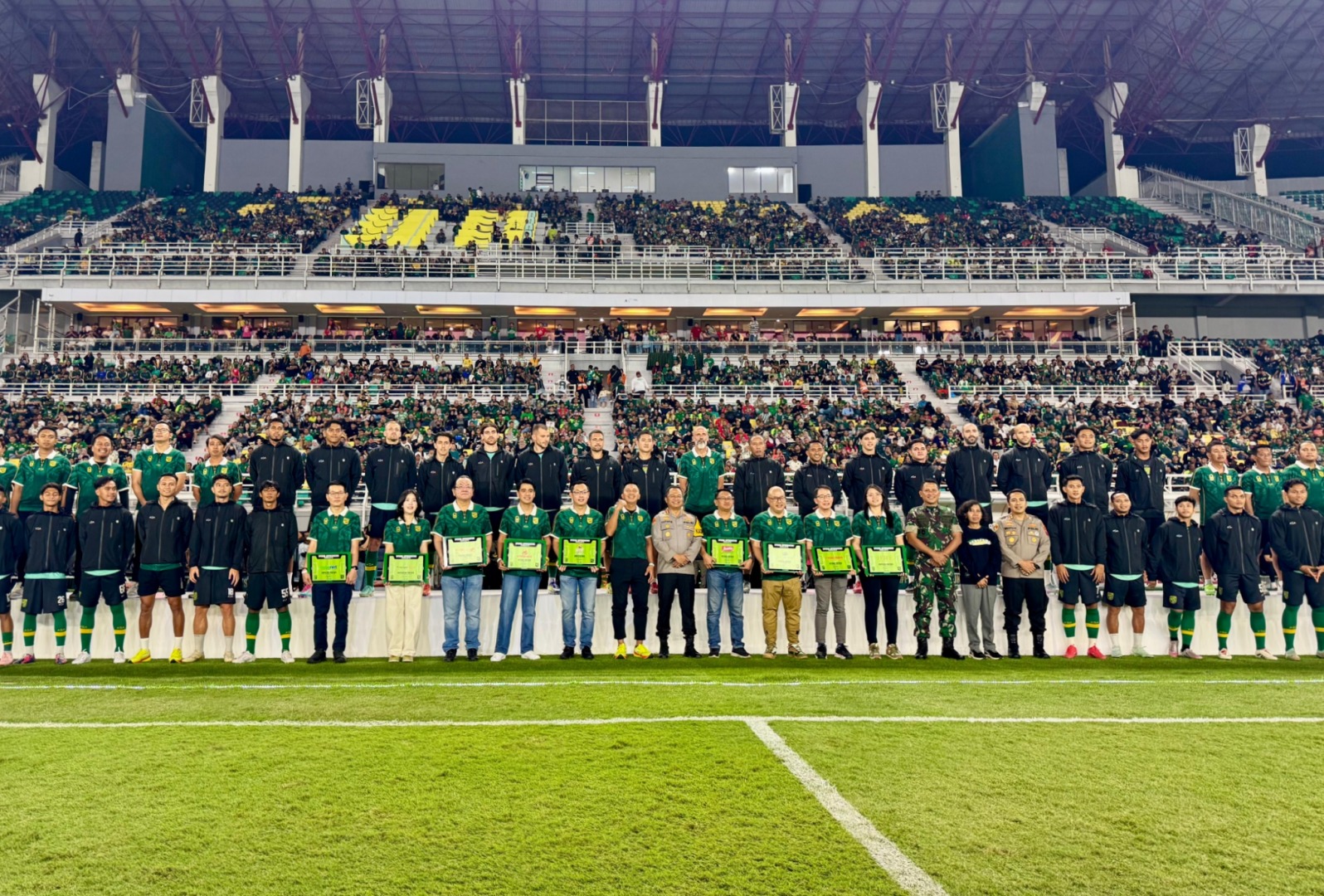 Piagam penghargaan diserahkan langsung oleh CEO Persebaya, Azrul Ananda, kepada Presiden Direktur MPM Honda Jatim, Suwito M, di hadapan ribuan suporter Bonek dan Bonita.