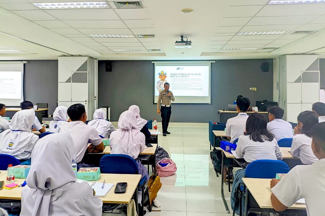 Materi yang disampaikan mencakup pemahaman dasar keselamatan berkendara, etika berlalu lintas, hingga pentingnya peran generasi muda sebagai pelopor keselamatan di lingkungan sekolah dan masyarakat.