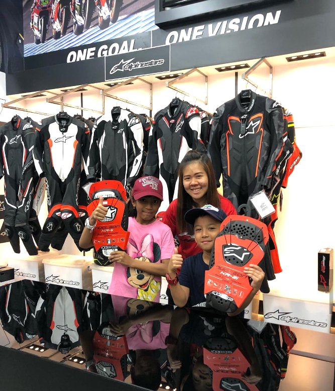 Tetap ada steping yang harus saya lalui, istilahnya pondasi dan pengenalan-pengenalan. Kebetulan saat acara liburan di Singapore, Miki dan Sascha saya ajak belanja ke Racing World, sentralnya apparel, hingga perlengkapan balap kelas dunia.