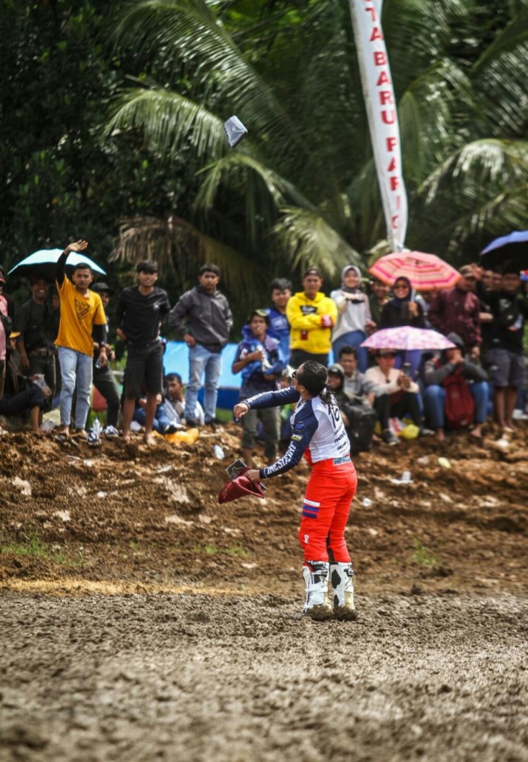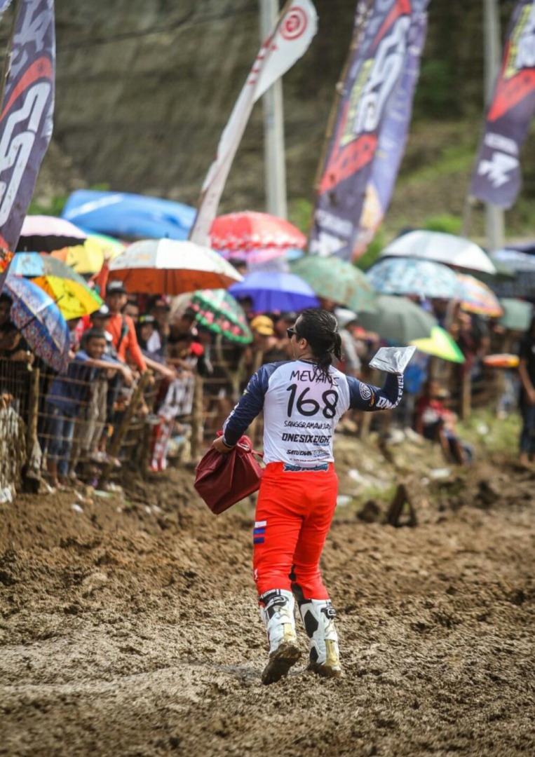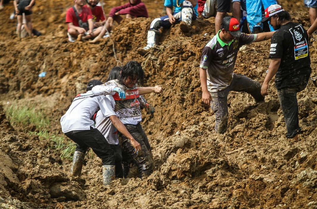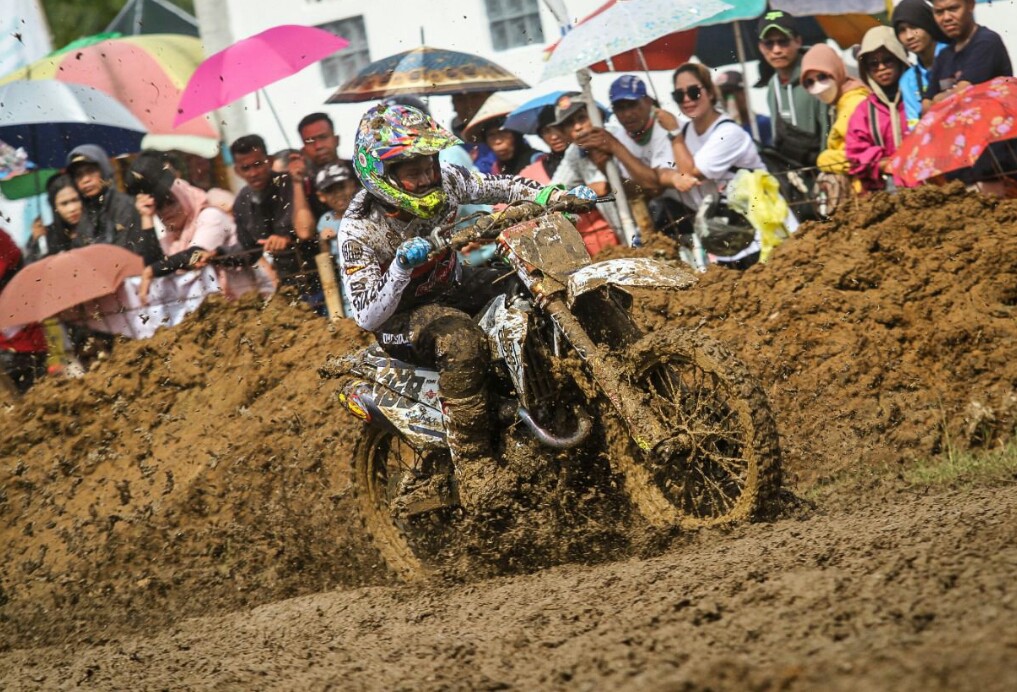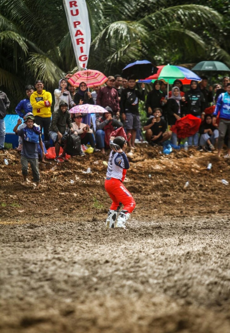 Ihwal intensitas hujan tinggi dan pengaruh jenis tanah lintasan vulkanik pasir, atmosfir kompetisi bergulir jadi laga mud race.