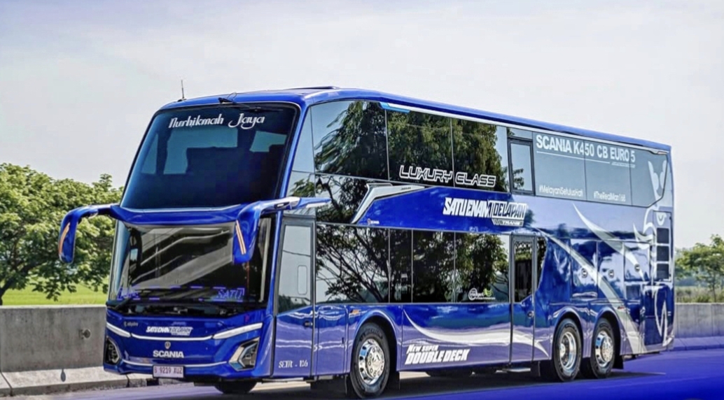 Armada 168 Trans Double Decker. Basic Scania K450CB, teknologinya diklaim paling ringan menghadapi medan extrem.