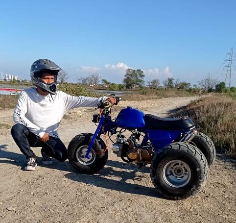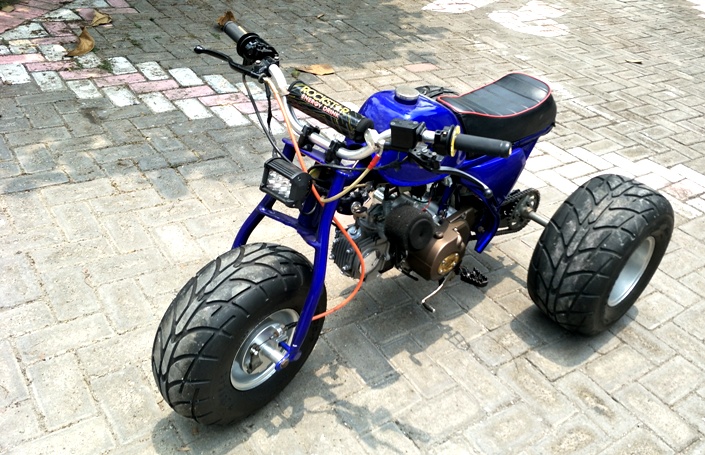 Mengusung basic mesin Lifan 110 cc konsumsi All Terrain Vehicle, Nasir mengkonversinya ke rancang bangun trike mini.