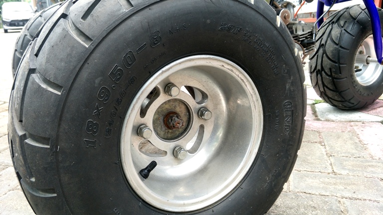 "Tapi, faktor pemakaian tapak kaki Junkai 16 x 8.00-7 bagian depan dan Qing Da 18 x 9.50-8 di belakang, yang notabene dari ATV saya hampir terkecoh saat membentuk wheel base, "kata Udek.