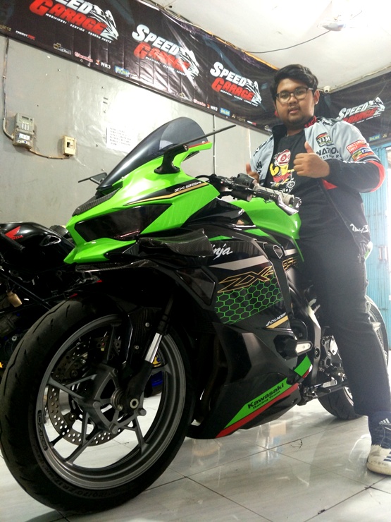 Hamdan begitu sapaan akrabnya, juga mengapresiasi tongkrongan ZX 25R, melalui modifikasi skala face lift.