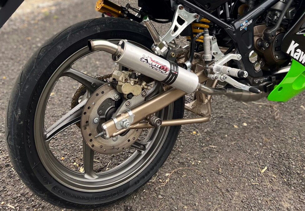 "Meninjau postur dan dimensi KRR 150, profil paling pas 185-17 buat depan dan belakang 215-17, "tunjuk Agha yang mengaplikasi profil carbon pada spatbor depan.