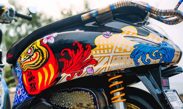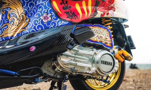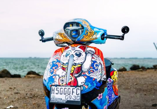Seperti grafis di spatbor, spion, cover lampu, rear handle bar, hingga jok, dimodifikasi untuk mendukung tematis konsepnya.