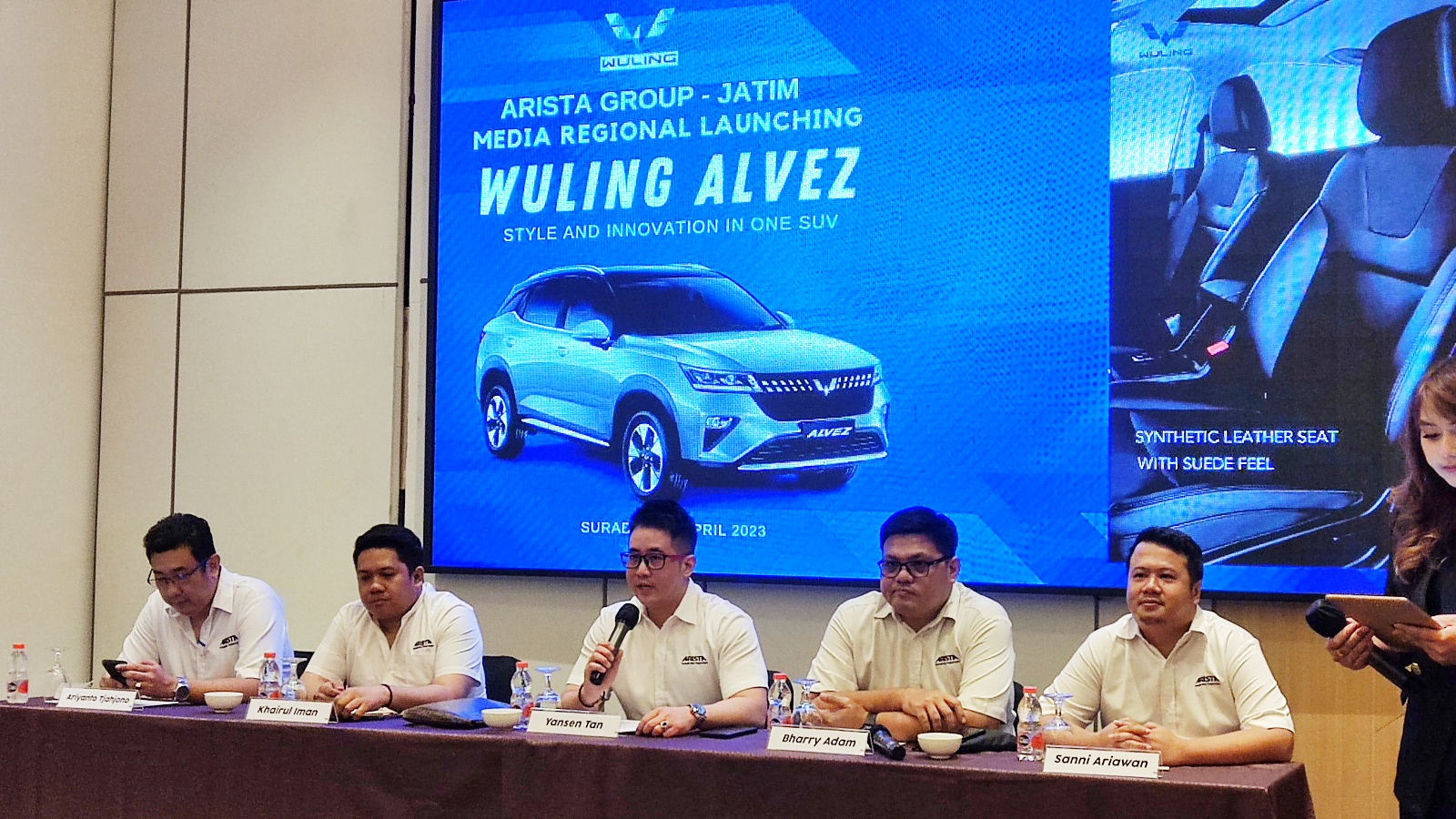 Yansen Tan selaku Operational Manager Wuling Arista Jatim saat Press Conference meniagakan lini produk terbarunya Wuling Alvez untuk masyarakat Surabaya dan sekitarnya dengan harga mulai dari Rp. 214.500.000 sampai dengan Rp. 300.500.000 (OTR Surabaya).