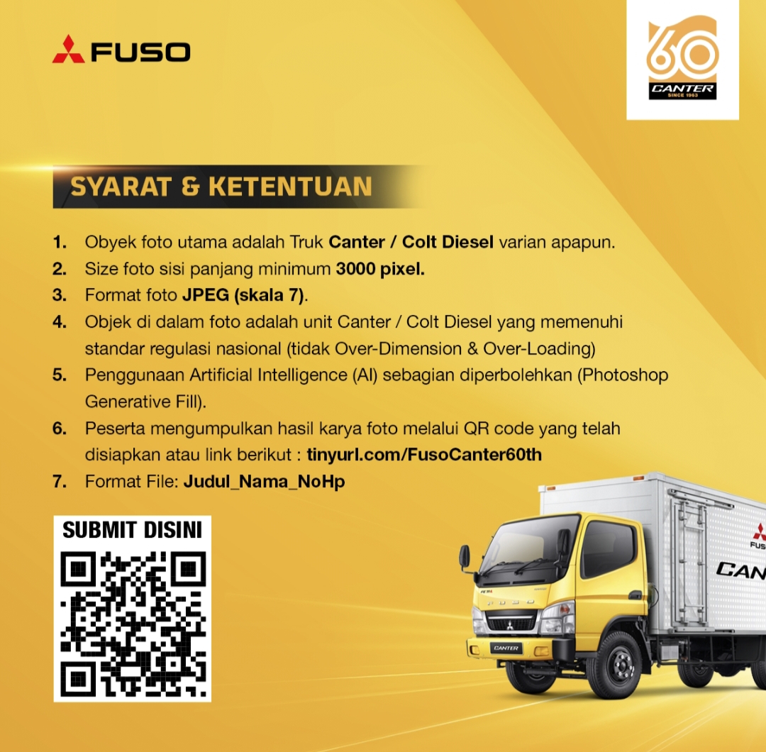 PT. Krama Yudha Tiga Berlian Motors (KTB), distributor resmi kendaraan niaga Mitsubishi Fuso di Indonesia, menggelar kompetisi foto dan video dengan total hadiah senilai Rp. 165 juta rupiah dalam rangka merayakan 60 tahun Mitsubishi Fuso Canter secara global.