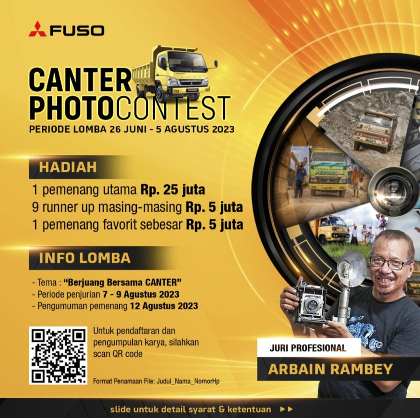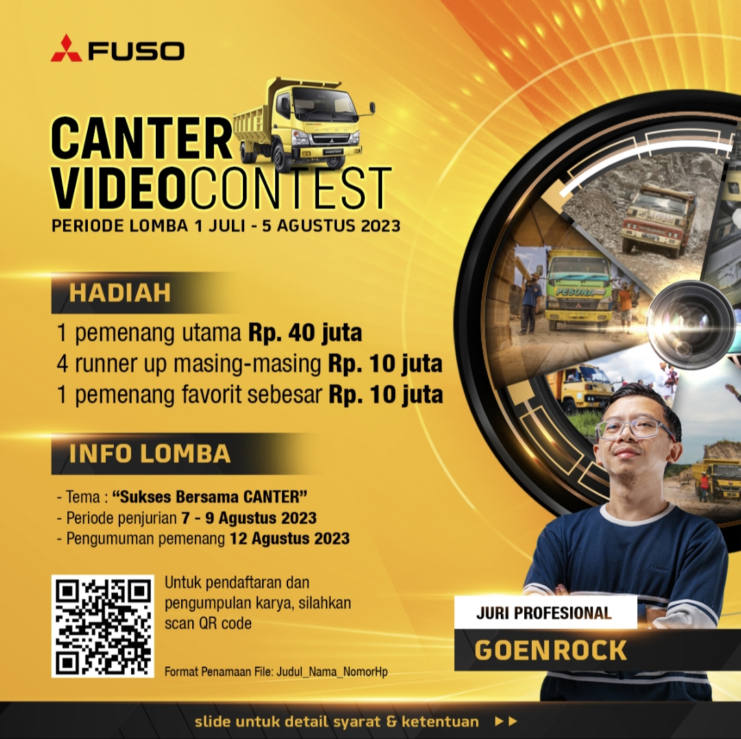 Untuk menyemarakkan anniversary Mitsubishi FUSO Canter, PT. KTB mengajak publik untuk berpartisipasi menjadi bagian dari sejarah perjalanan FUSO Canter dengan menggelar Photo & Video Competition yang menggambarkan cerita sukses para pelaku usaha bersama Canter.
