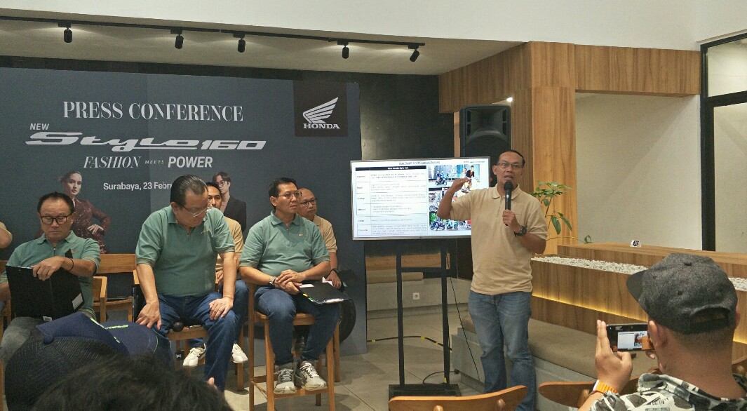 Berbagai fitur terbaru yang diadopsi New Honda Stylo 160, turut disampaikan oleh Suhari Marketing Communication & Development Division Head MPM Honda Jatim.