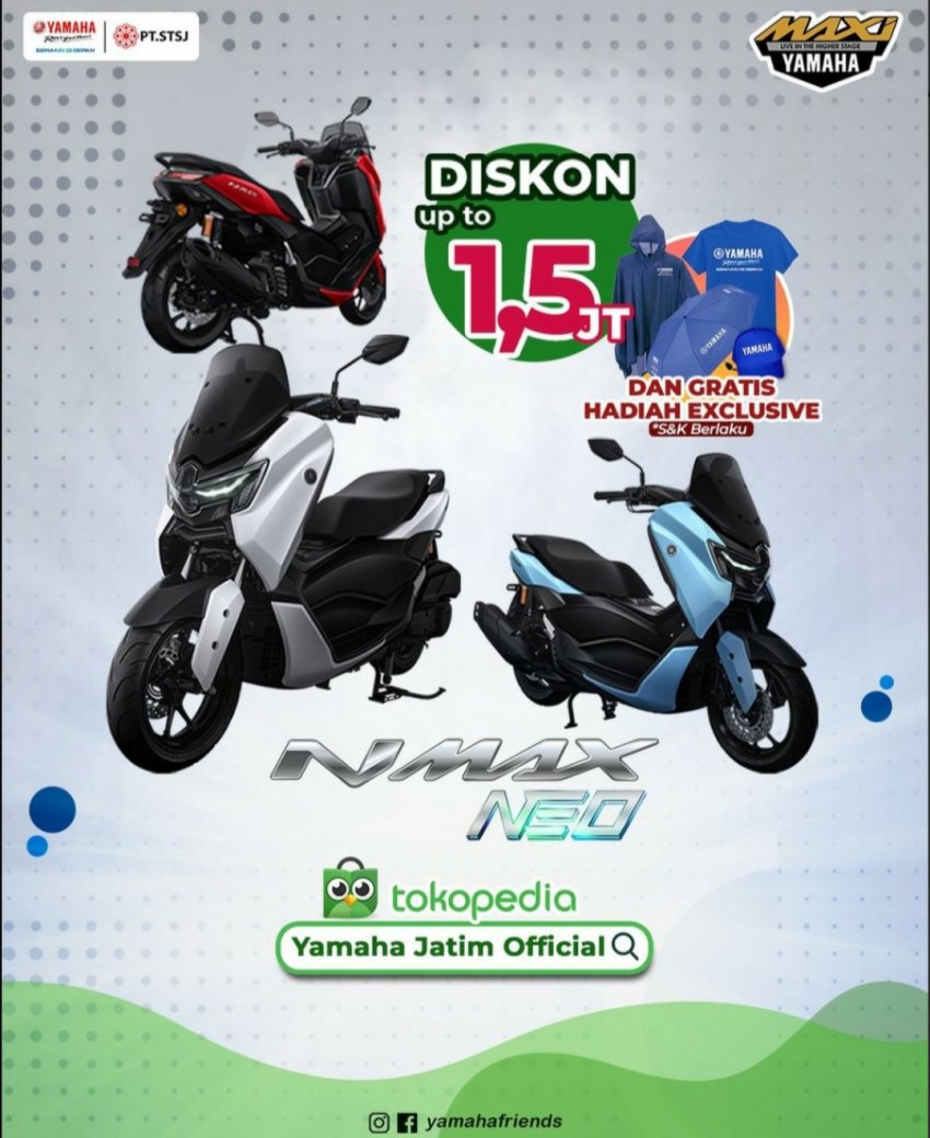 Melalui Yamaha Jatim Official Store di Tokopedia, Yamaha STSJ memberikan diskon menarik hingga Rp. 1,5 juta untuk pembelian semua jenis motor Yamaha.