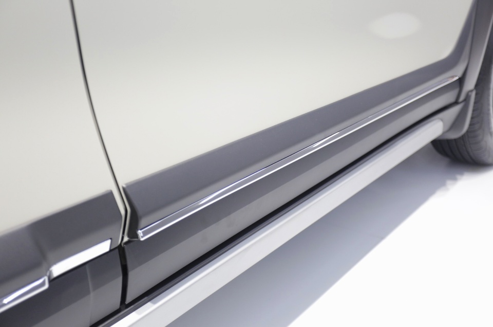 Sebagai penyeimbang tampilan samping, Body Side Moulding with Garnish Insert dapat dipasang untuk proteksi bodi dari potensi goresan, sekaligus menyisipkan kesan elegan serta eksklusif pada siluet garis eksterior kendaraan.