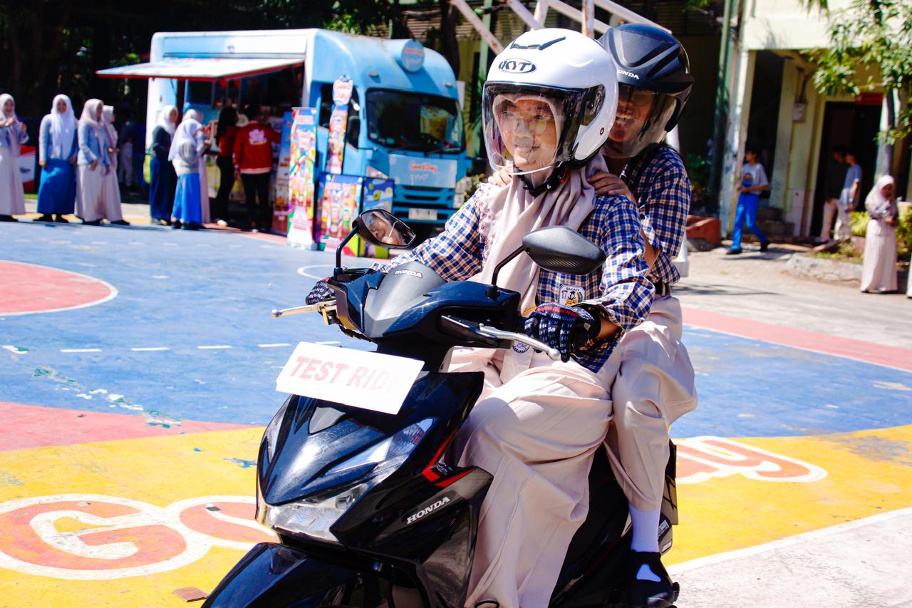 Edukasi Keselamatan Berkendara untuk Pelajar Dalam setiap kunjungan, MPM Honda Jatim juga menghadirkan edukasi keselamatan berkendara.