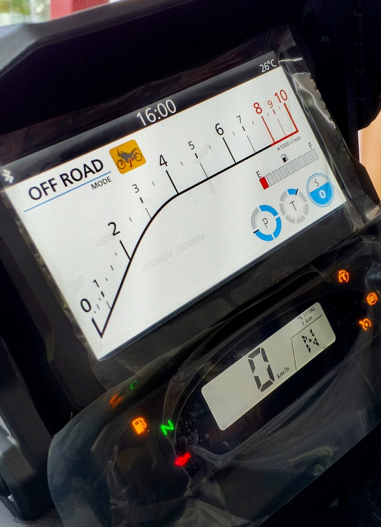 Fitur “G switch” memberikan torsi lebih besar pada RPM rendah saat off-road, serta fitur cornering detect untuk perpindahan gigi yang lebih natural saat menikung.
