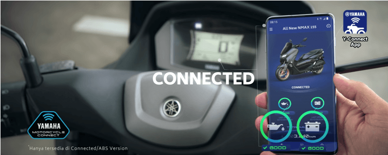 Dimana pengendara dapat terhubung dengan sepeda motornya melalui aplikasi Y-Connect di smartphone.