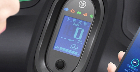 Dengan sajian notifikasi pesan, telepon, serta jam digital, selain indikator Electric Power Assist Start, baterai smartphone.