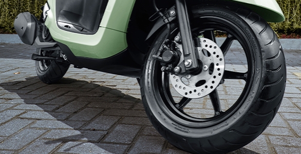 Profil ban depan belakang 110/70-12 mengadopsi tipe Tubeless, yang makin nyaman dan aman, saat dipakai menjelajah sekalipun.