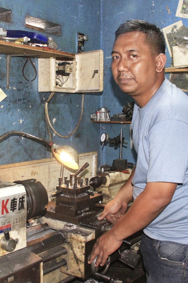 Saat menimba pengalaman, Abby spesialis menggawangi mesin bubut, bor tune, meja freish, las diral, gerinda, berikut kacamata safety.