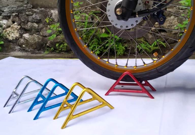 A-Stand menurut Zulfikar memang paling pas buat menstandar sepeda MTB, jenis enduro, dirt jump sampai downhills. Jadi lebih aman dan praktis. Bobot-nya juga ringan, sebab A-Stand berlabel DDF produksi Zulfikar, memakai bahan sejenis alutech.