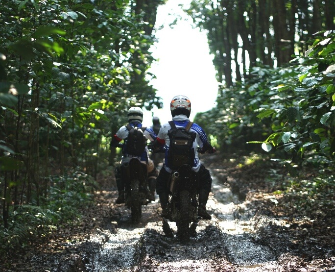 Triknya, saat menghadapi sepanjang trek off road yang ditawarkan kali ini, baik batu cadas maupun vulkanik basah, jangan sampai melawan handling.