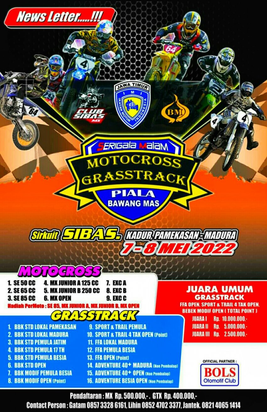 Simpatisan yang peduli serta perhatian dengan event otomotif segmen motocross dan grasstrack, di Jatim kian bergairah.