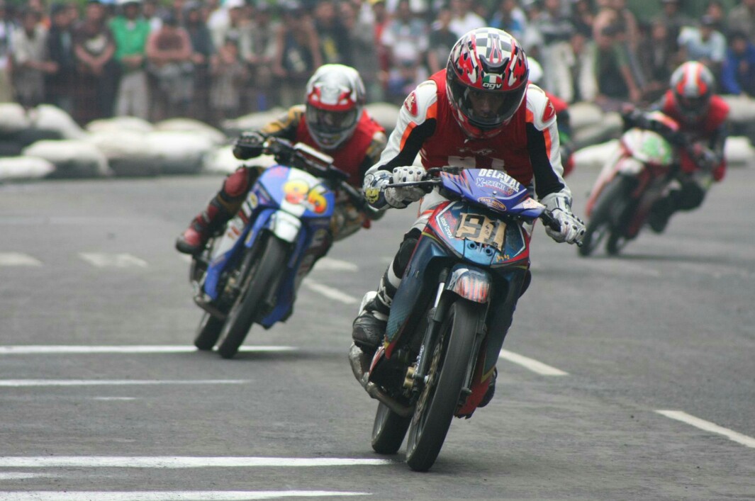 Satu ini pasti ulah H. Franky, tak senang kalau melihat rider gas poll di trek lempeng, sambil "tolah-toleh.