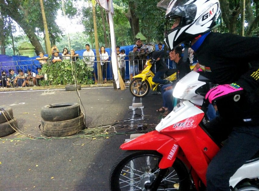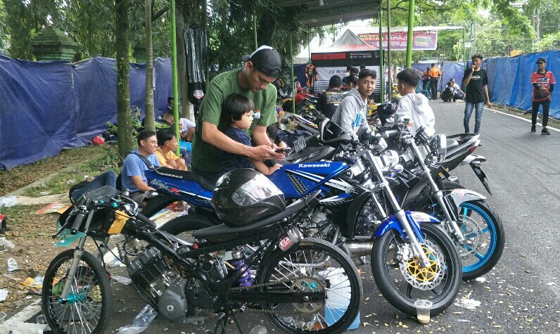 Termasuk pacuan Sunmori, di kelas bracket yang masih komplit dengan piranti safety ridingnya.