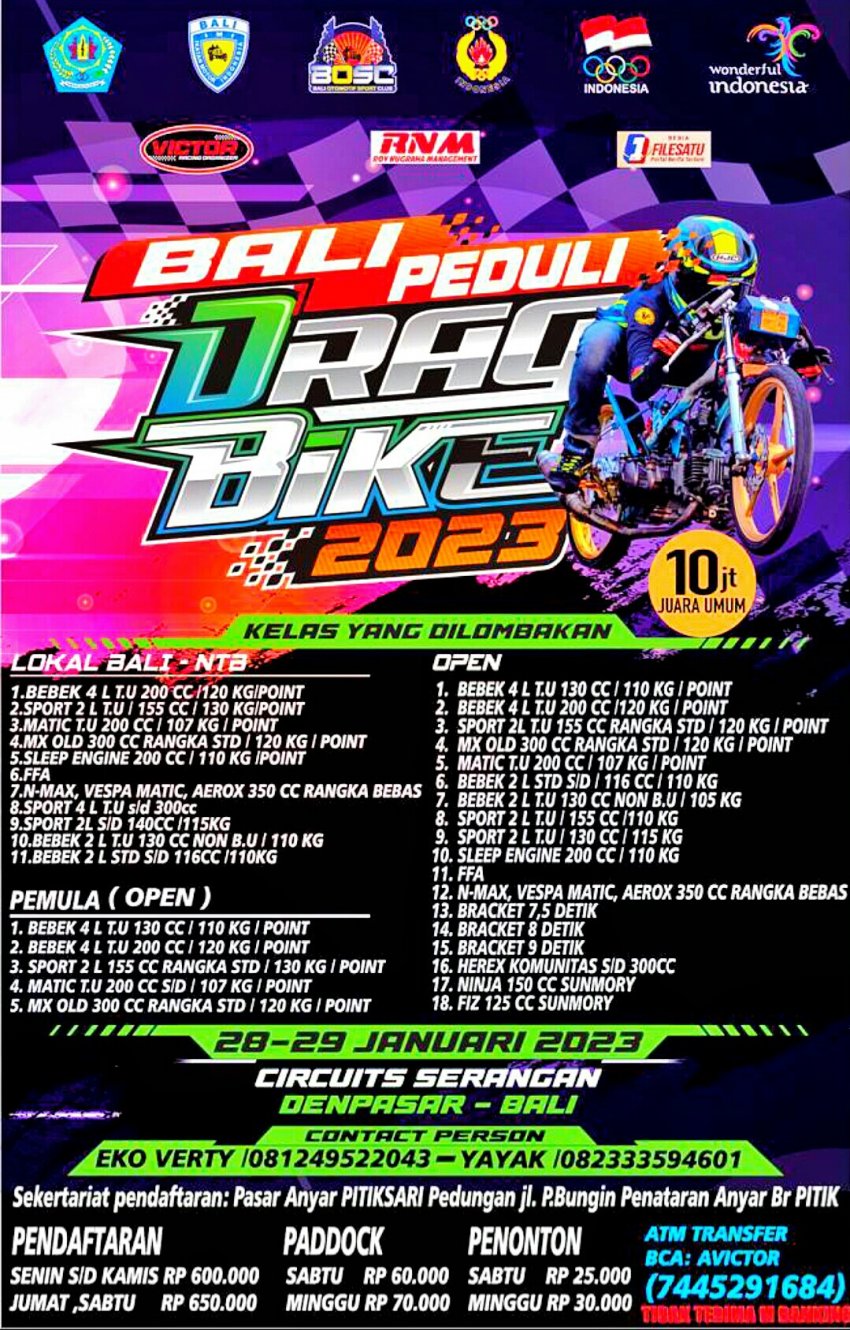 Latar itu pula, kami mengusung titel "Bali Peduli Drag Bike Openchampionship 2023", guna merepresentasikan bentuk simpati dan kepedulian di dunia drag bike, melalui sajian event berkelas di weekend ini, "tegas Victor San.