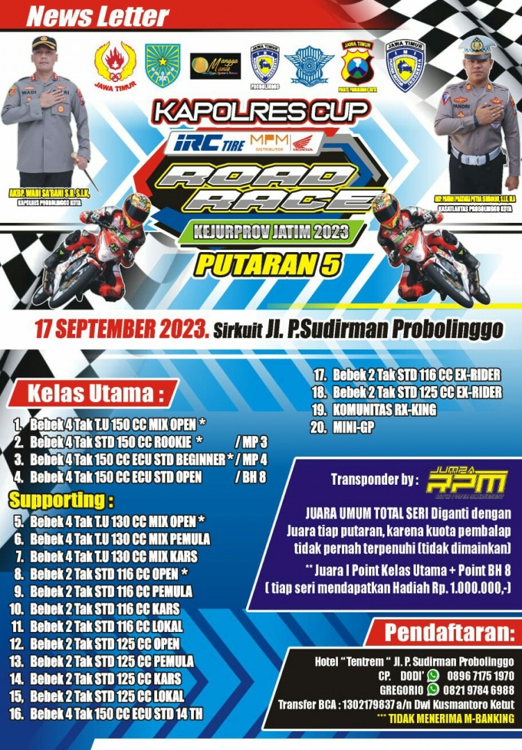Terbagi 22 kelas, yaitu kelas utama dan supporting class, akan menjadi kawahcandradimuka seluruh level rider dan milenial Probolinggo, khususnya penghobi road race.