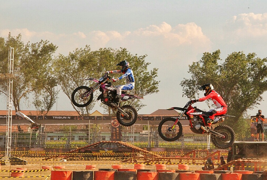 Lantian Juan dan Andreas Damara kembali tebar pesona di lintasan Raden Wijaya, Surodinawan, Mojokerto di special event bertajuk Trial Game Dirt 2023.