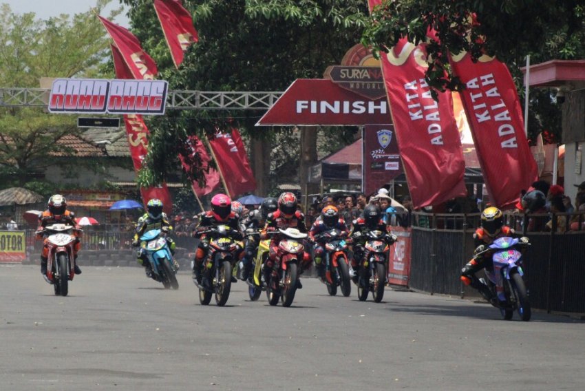 Di laga openchampionship road race Tulungagung, pekan silam, menjadi bagian road show Racing Team, hasil kolaborasi Hendra Widodo dan Anjar, asal Bondowoso.