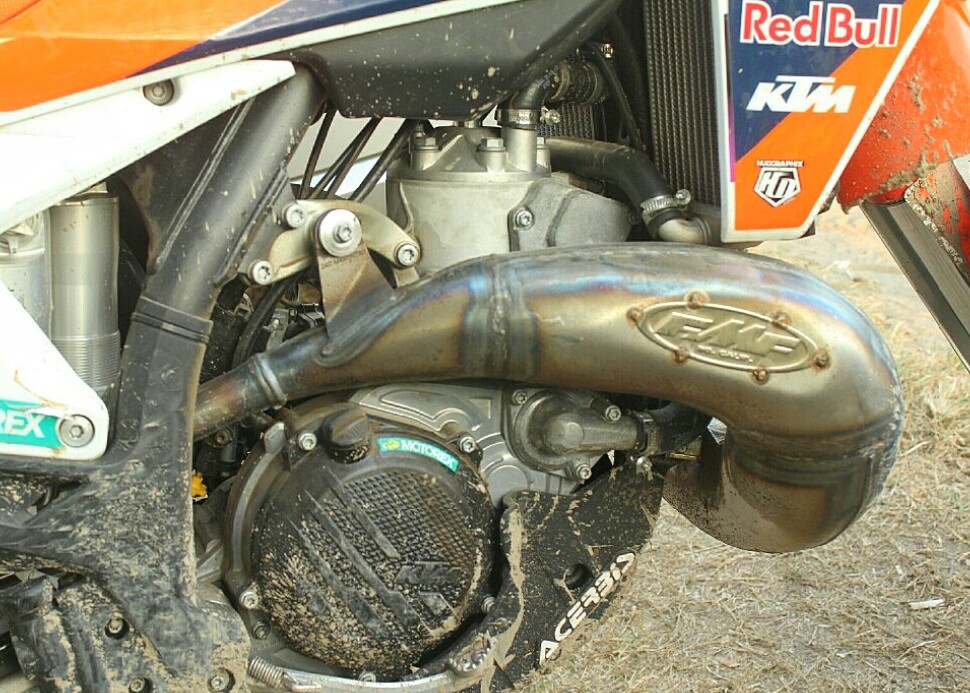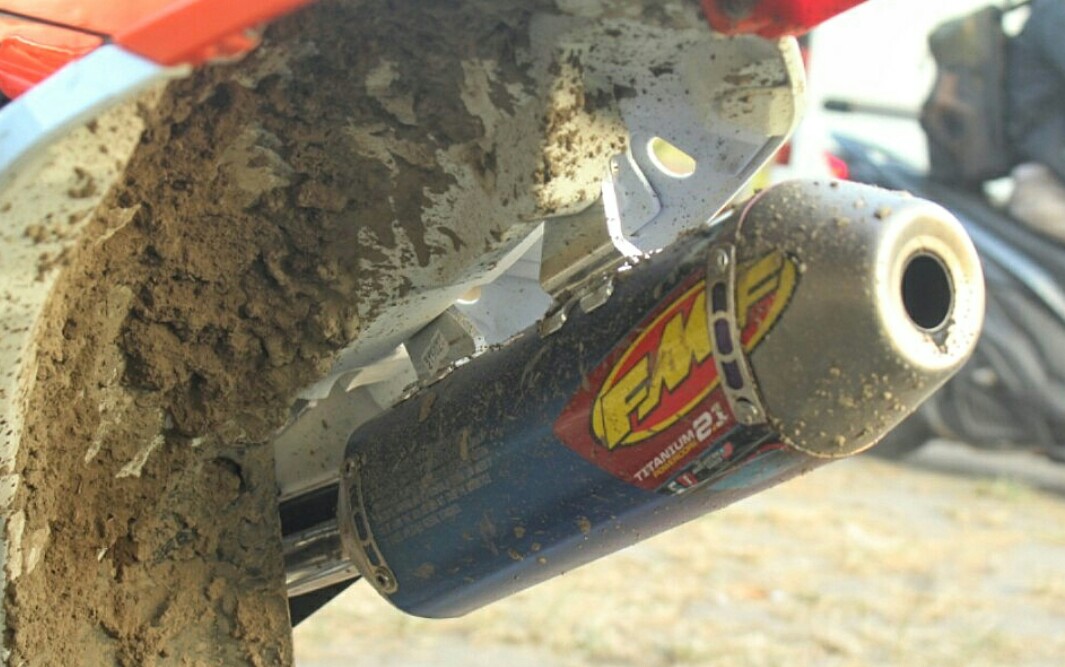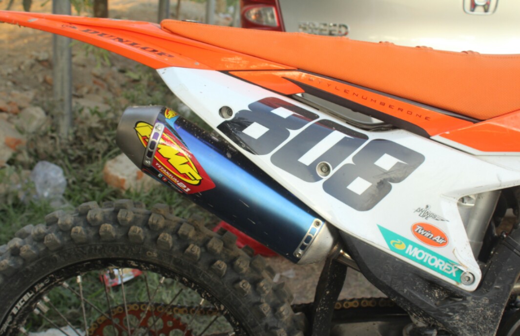Demikian knalpot, berganti produk FMF, dengan desain header, dimensi perut, panjang stinger dan silincer, buat menghadapi tipikal handicap motocross di Indonesia.