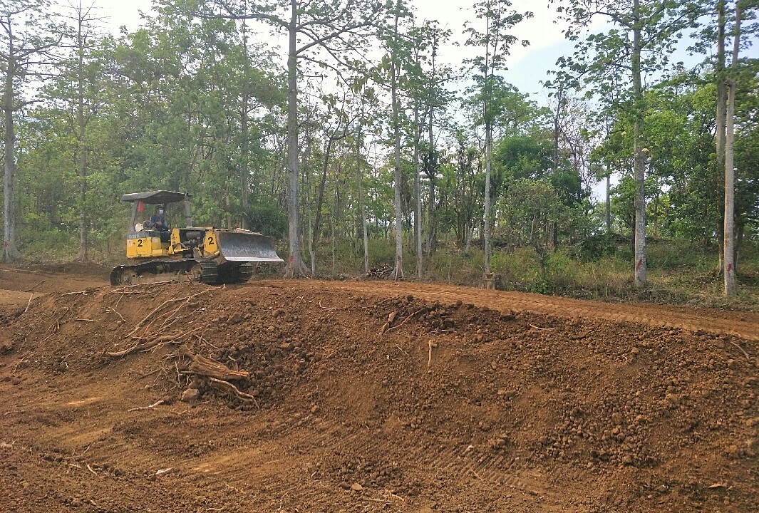 Tampak tiga unit alat berat dikerahkan, untuk memuluskan perjalanan proses pembangunan sirkuit Sumber Tetek Rizqy Motorsport, hasil inisiasi Big Boss H. Rokhmawan.