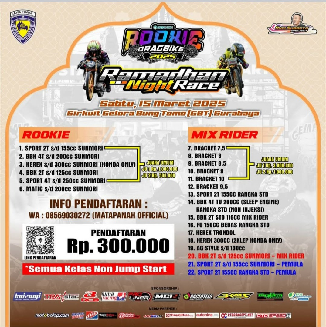 Di momentum bulan suci Ramadhan 2025, Michael Rudi ujung tombak Matapanah Production, kembali mengakomodir milenial penggemar adu kebut trek lurus, di spektakuler event bertajuk "Matapanah Rookie Drag Bike 2025 - Ramadhan Night Race".