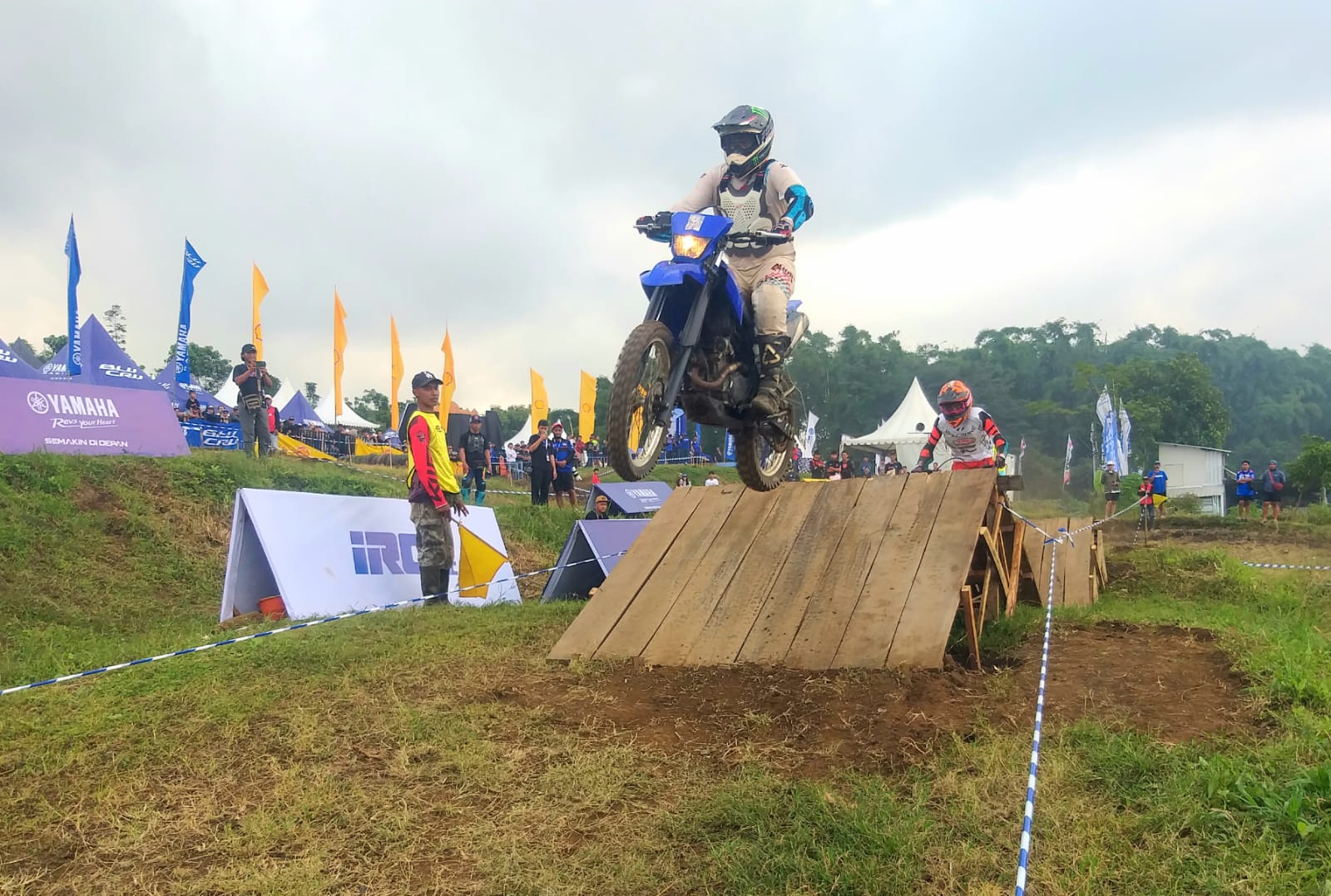 Demikian sistem assist slipper clutch, kebutuhan mengumpan power dan aksi wheelie, jadi lebih mudah direalisasi, saat dihadang oleh pohon bagian obstacle jalur Shell BluCru Yamaha Enduro Challenge 2025, Batu. skg