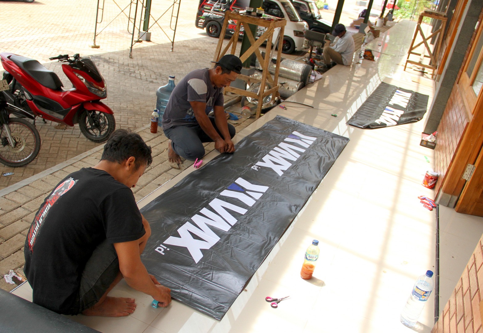 Sedang divisi support system, lagi produksi menyiapkan banner, A Board, umbul-umbul, podium, hingga bando Finish.