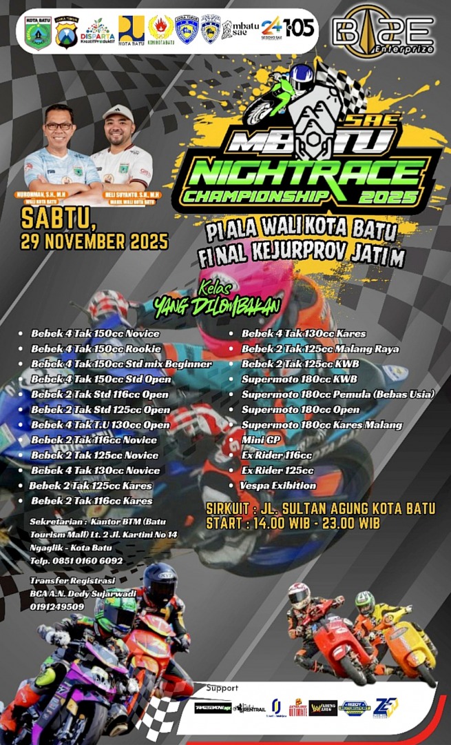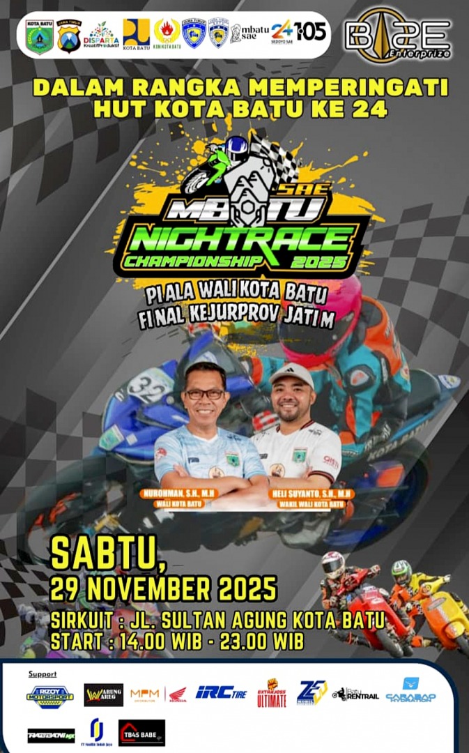 Bicara statistik dan pesatnya perkembangan road race, maka Batu Night Race yang menjadi sesi Grand Final Kejurprov Jatim Road Race 2025, diklaim menjadi tontonan spektakuler yang menegangkan !