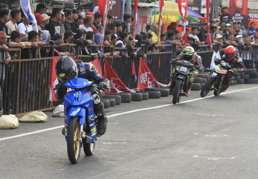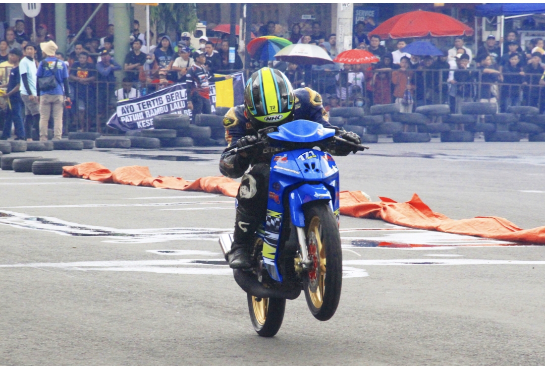 Mode otomatis, F1Z R kelir biru dengan icon "bludermoju.official", tak terkejar oleh rival-rival Ade Moju saat bertempur di kelas ExRider.
