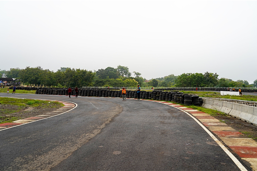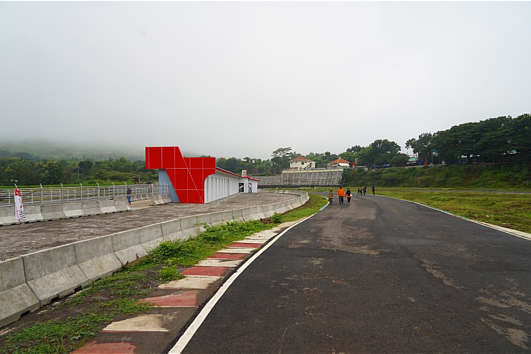 Dan fitur pelengkap yang lagi proses pengerjaan, adalah pembangunan tribun di 2 titik, ruang timing control system dan pengecatan grid start sepanjang 75 meter.